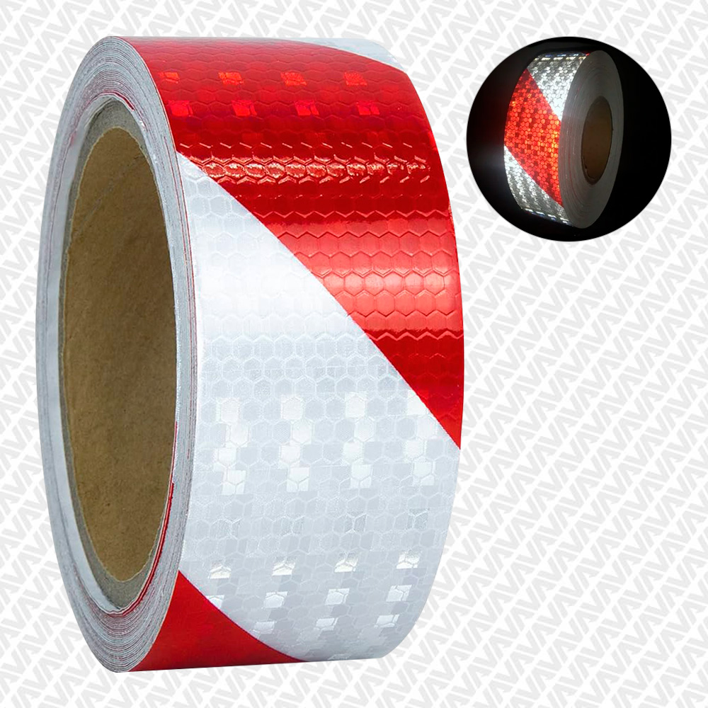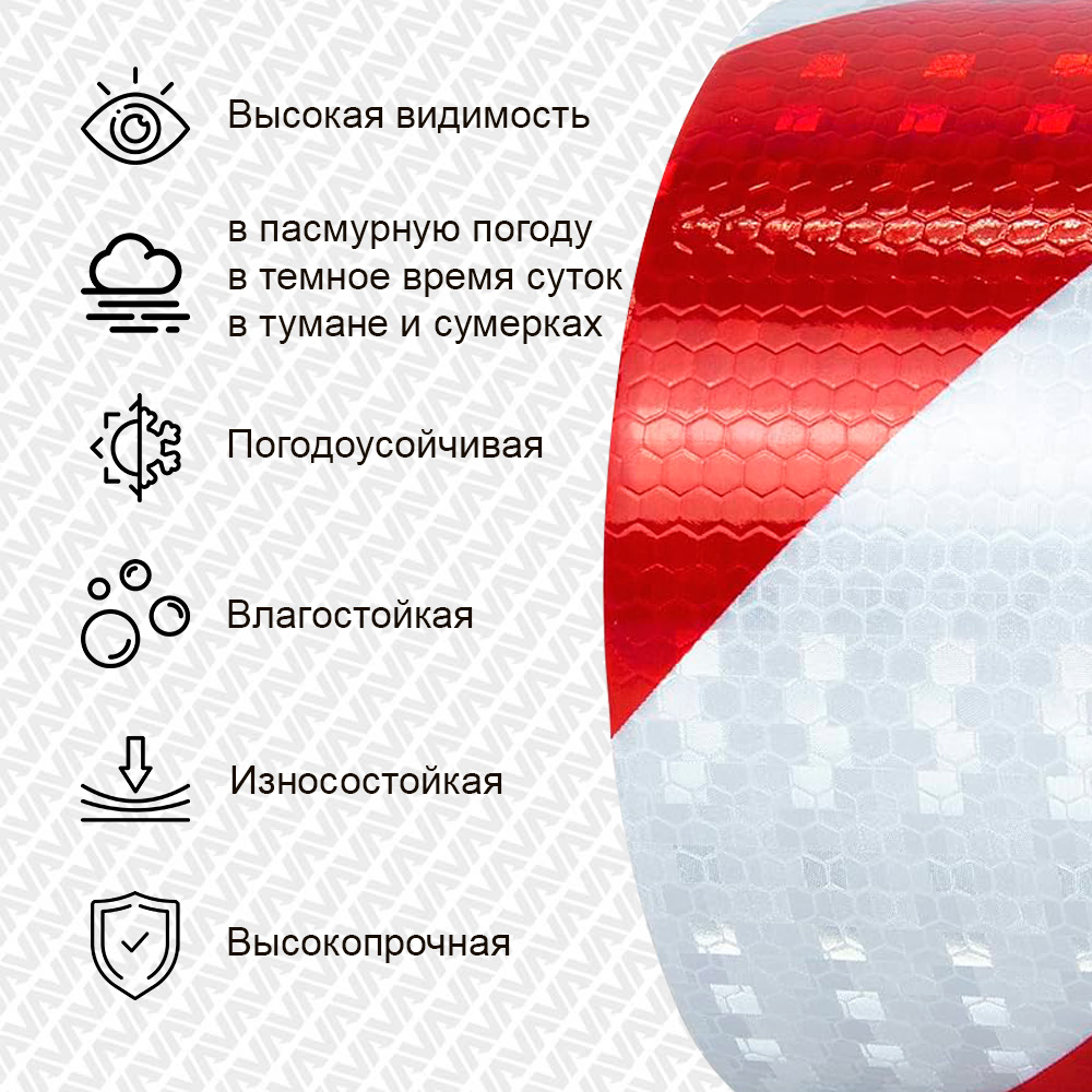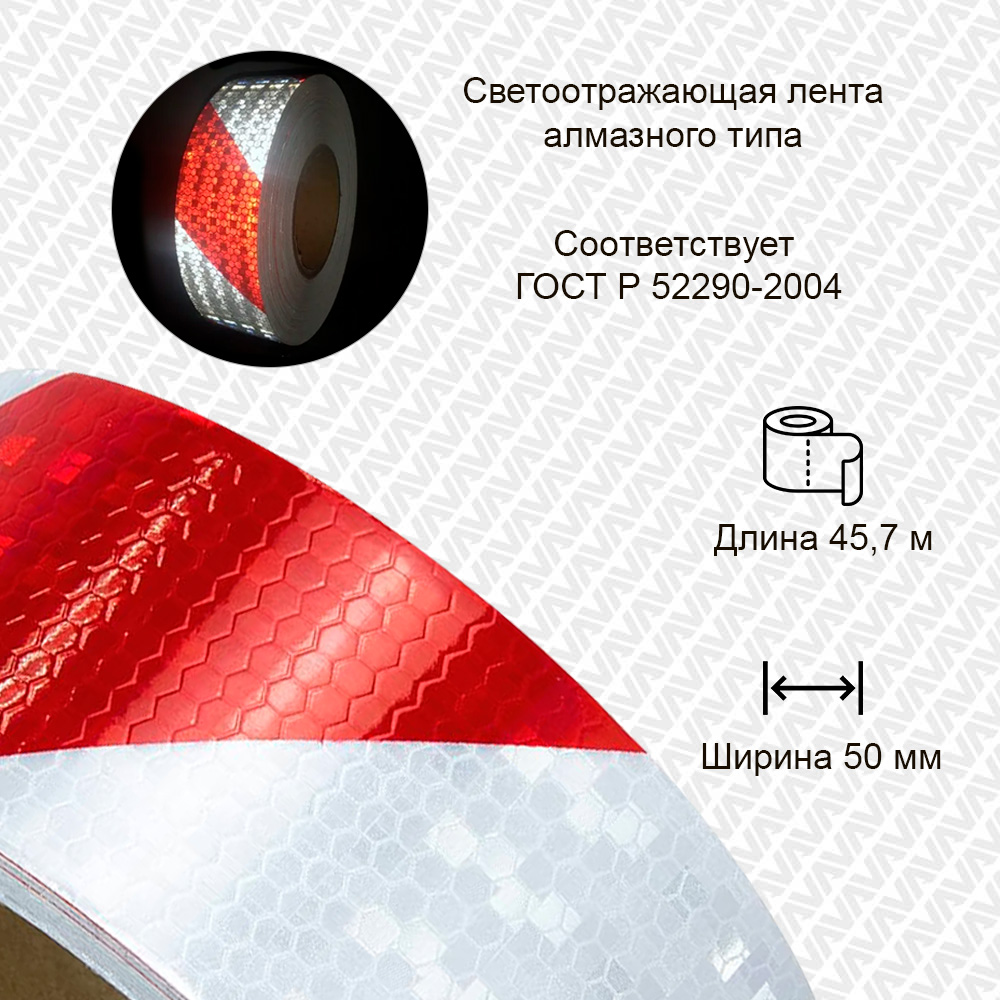 Алмазная светоотражающая красно-белая лента "Зебра" применяется для контурной маркировки грузовых автомобилей, прицепов, фургонов, трейлеров, автобусов, велосипедов, самокатов, колясок.