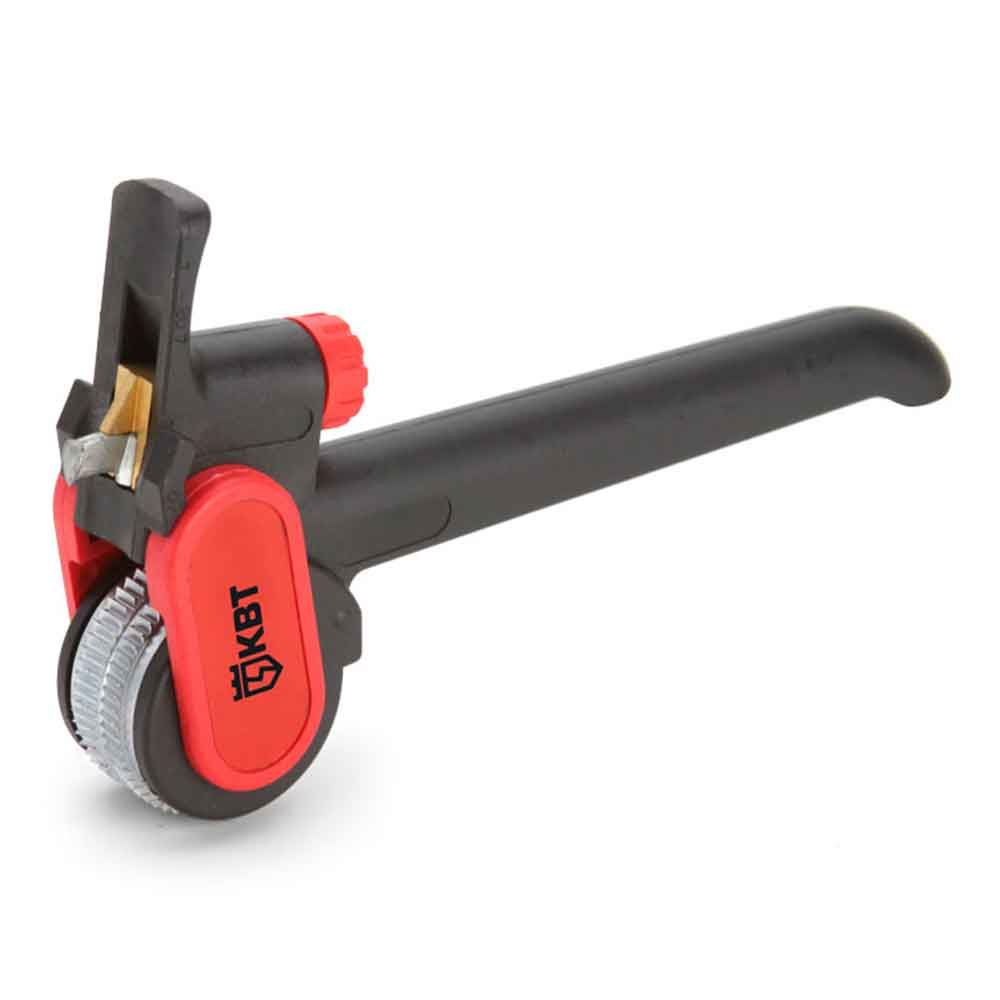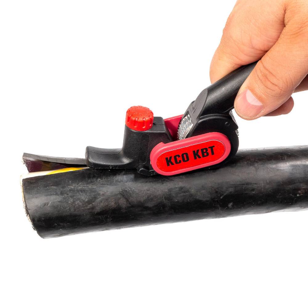 Инструмент для снятия оболочки КВТ КСО [55842] предназначен для снятия виниловых оболочек с силовых кабелей диаметром более 25 мм. Регулируемая длина ножа позволяет снимать изоляцию толщиной до 5 мм.