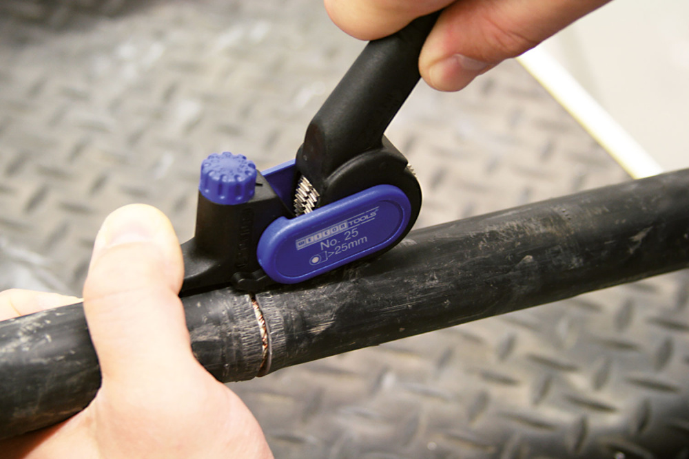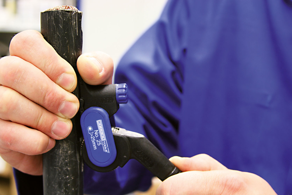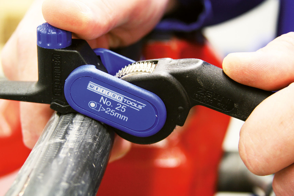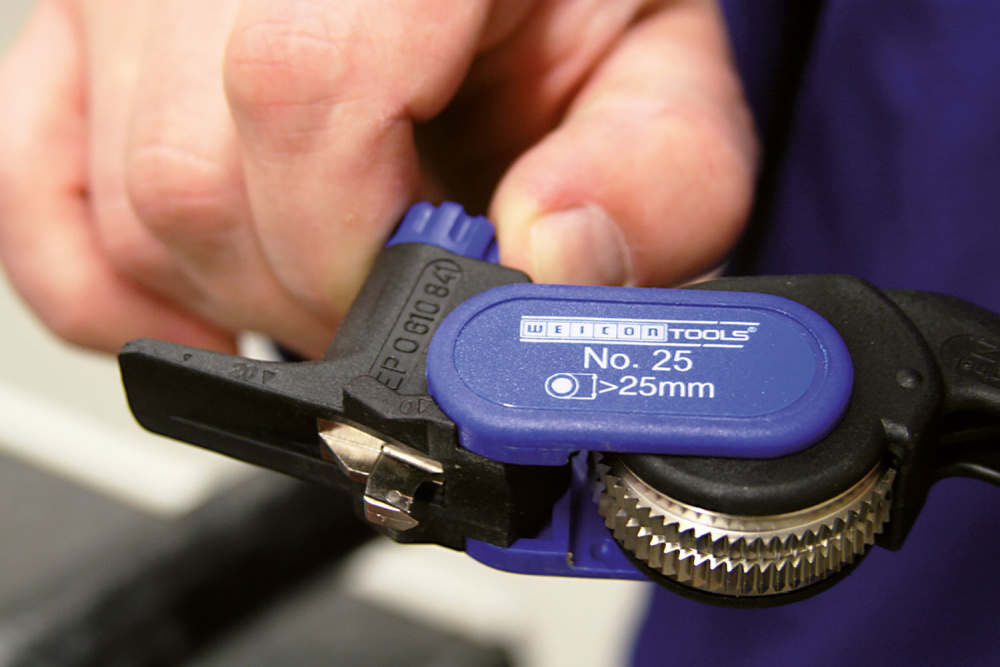 Инструмент Weicon № 25 [wcn52000025] для снятия оболочки круглых кабелей диаметром от 25 мм. Выполняет круговой и продольных резов оболочки