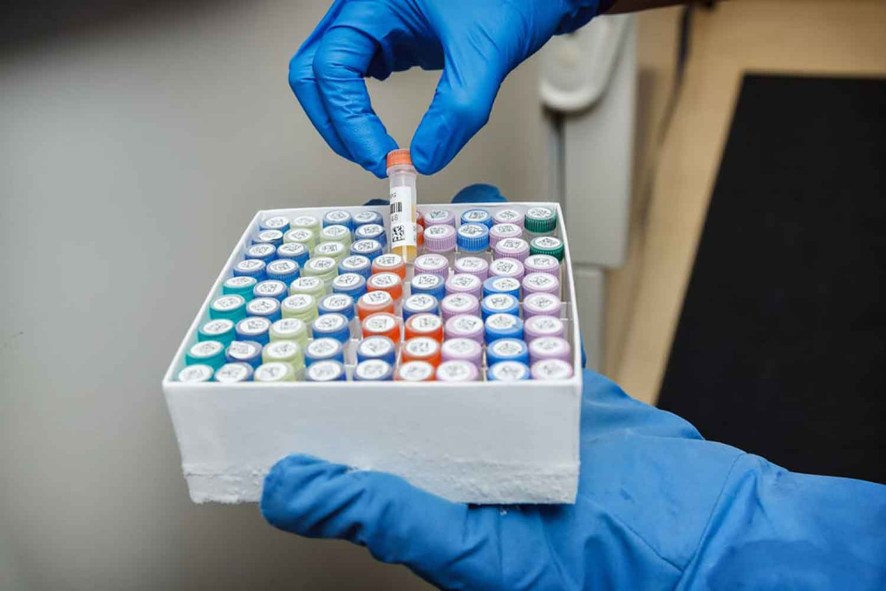 Прозрачная пленка защищает напечатанный текст на белой части этикетки от внешнего воздействия растворителей и щелочей, а также позволяет увидеть уровень жидкости в пробирке.