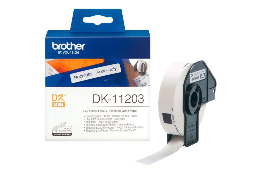 Оригинальная лента Brother DK11203 для печати универсальных наклеек 17 х 87 мм, в рулоне 300 шт.