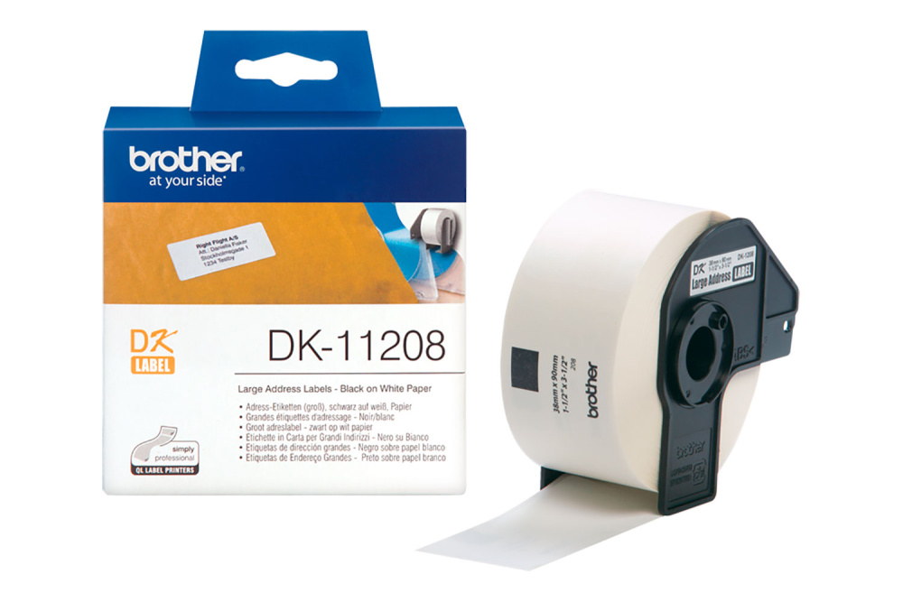 Оригинальная лента Brother DK11208 для печати адресных наклеек 38 х 90 мм, в рулоне 400 шт.