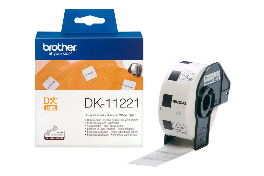 Оригинальная лента Brother DK11221 для печати квадратных наклеек 23 х 23 мм, в рулоне 1000 шт.
