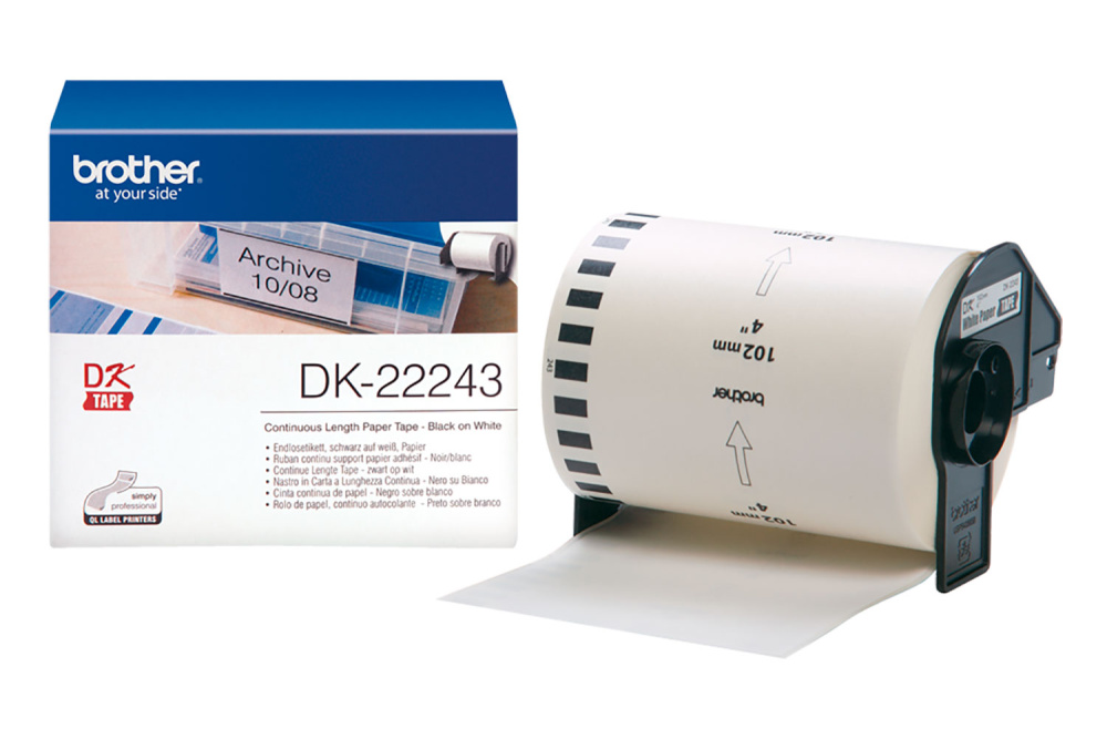 Оригинальная лента Brother DK22243 непрерывная бумажная лента для печати наклеек, 102 мм х 30.48 м, белая.