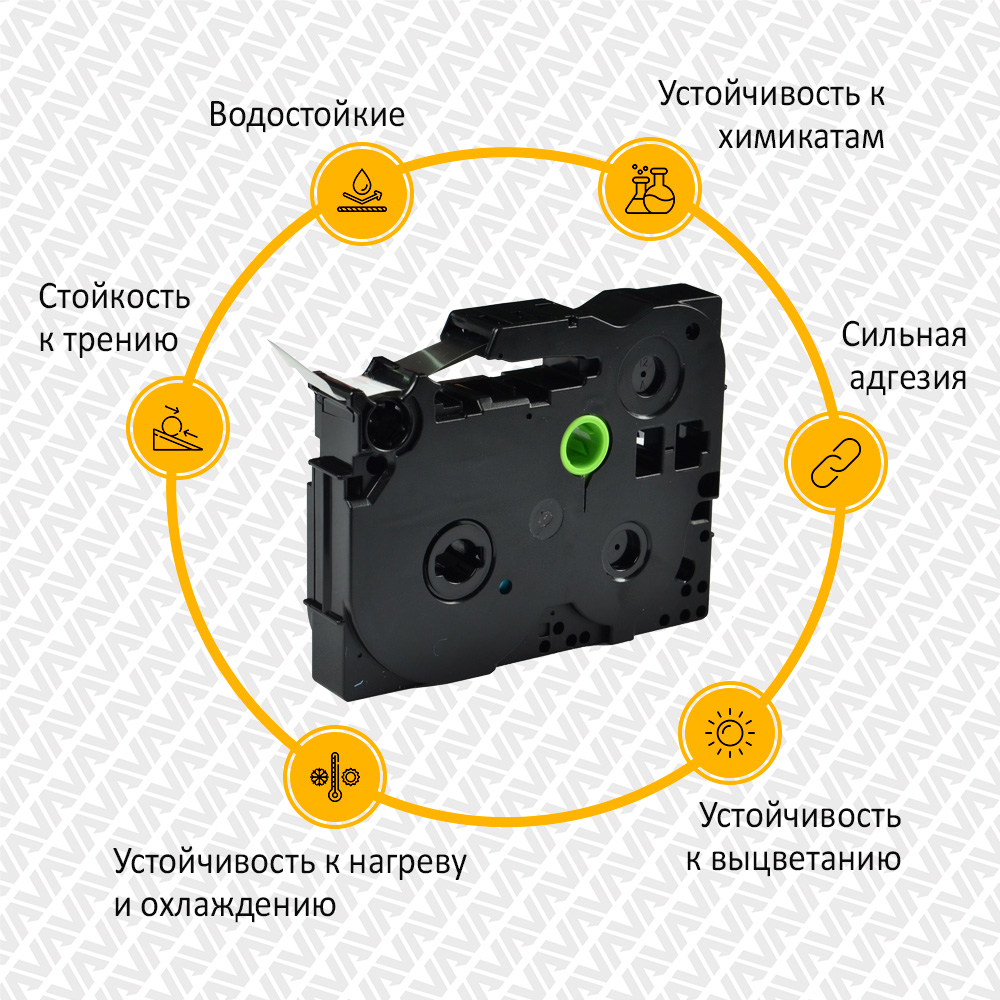 Совместимый картридж TZe-111 для печати наклеек и этикеток, отлично подойдет для маркировки товаров, упаковок, кабеля, трубопровода, папок, архивов и полок. Профессиональное решение для маркировки в офисе, дома или на производстве.