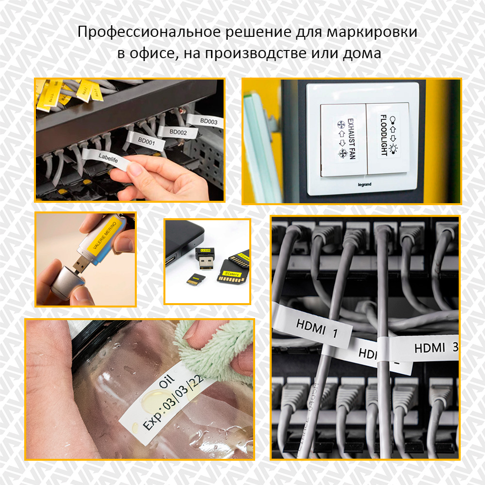 - 100% совместимость с ленточными принтерами этикеток Brother P-Touch
