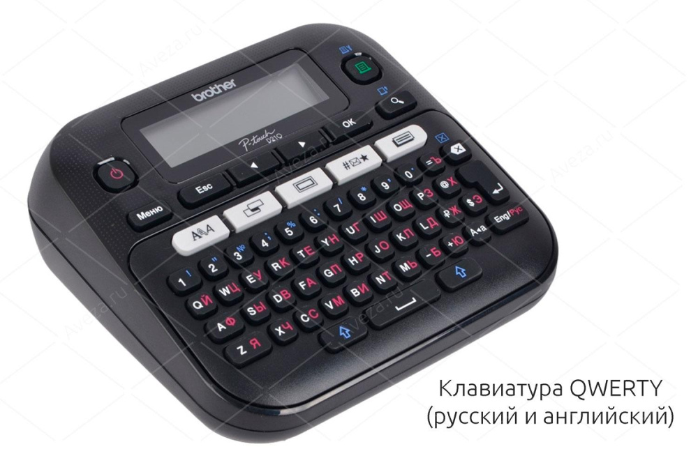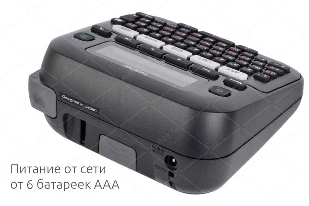 Принтер PT-D210VP работает от шести батареек ААА или от сетевого адаптера (в комплекте). Для удобства хранения и переноски в комплекте идет прочный пластиковый кейс.