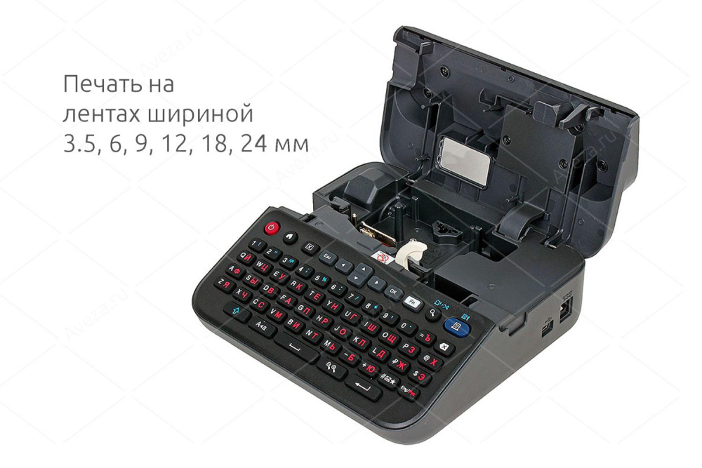 - Печать на лентах шириной 3.5, 6, 9, 12, 18 и 24 мм