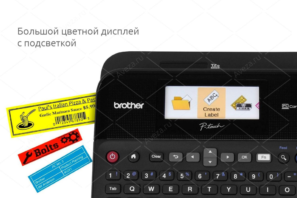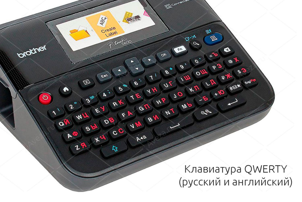 Принтер оснащен широкой QWERTY клавиатурой на русском и английском языках. Большой цветной ЖК-дисплей позволяет быстро создавать и просматривать перед печатью этикетки различных цветов и размеров.