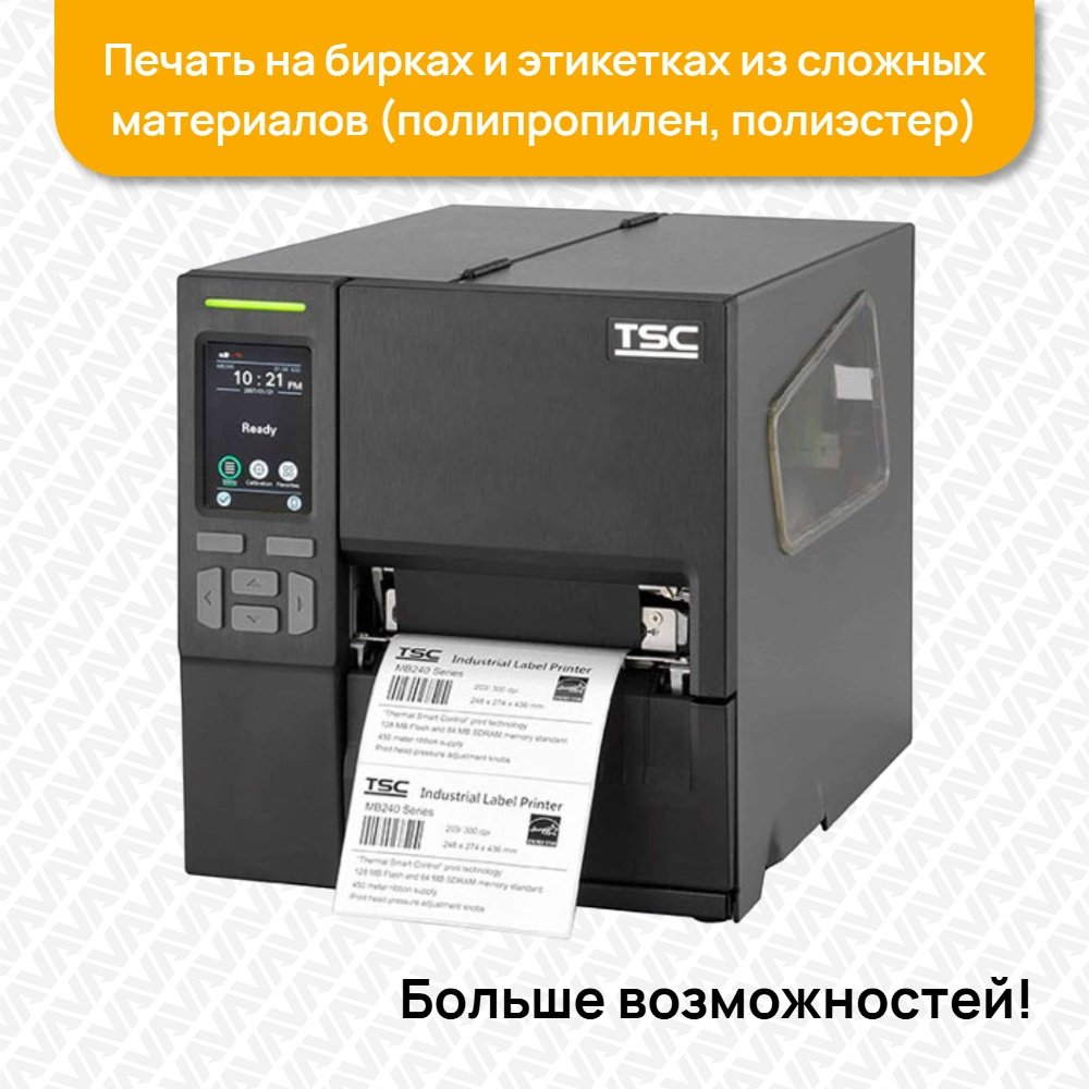 Термотрансферный принтер TSC MB240T [99-068A001-1202] предназначен для печати любого текста, графических изображений и наклеек для широкого спектра отраслей.