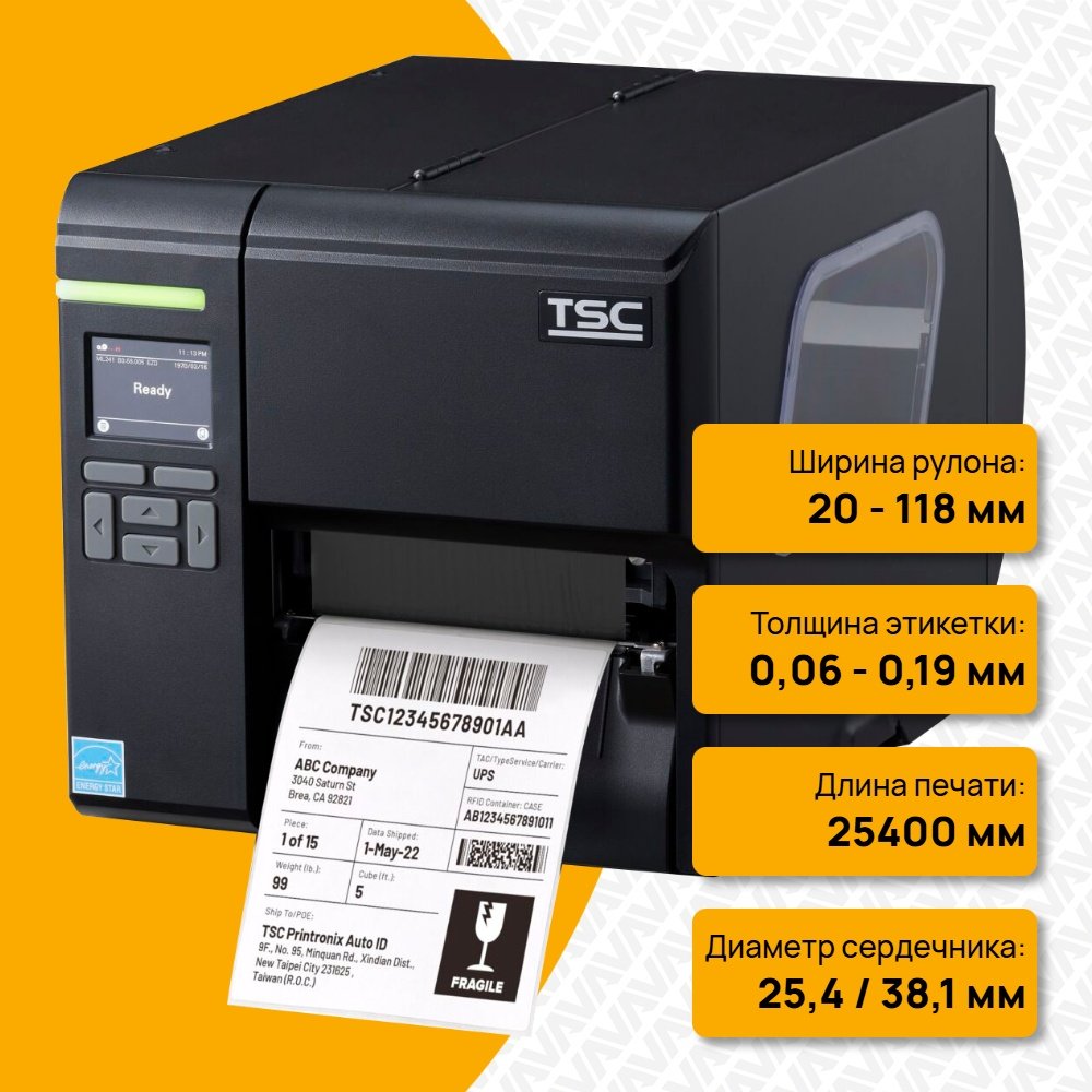 Термотрансферный принтер TSC ML241P [ML241P-A001-0202] — промышленный 4‑дюймовый принтер этикеток, созданный для интенсивной эксплуатации в условиях ограниченного пространства. Модель сочетает компактность, простоту обслуживания и широкие возможности интеграции — подходит для складов, производств и логистических центров.