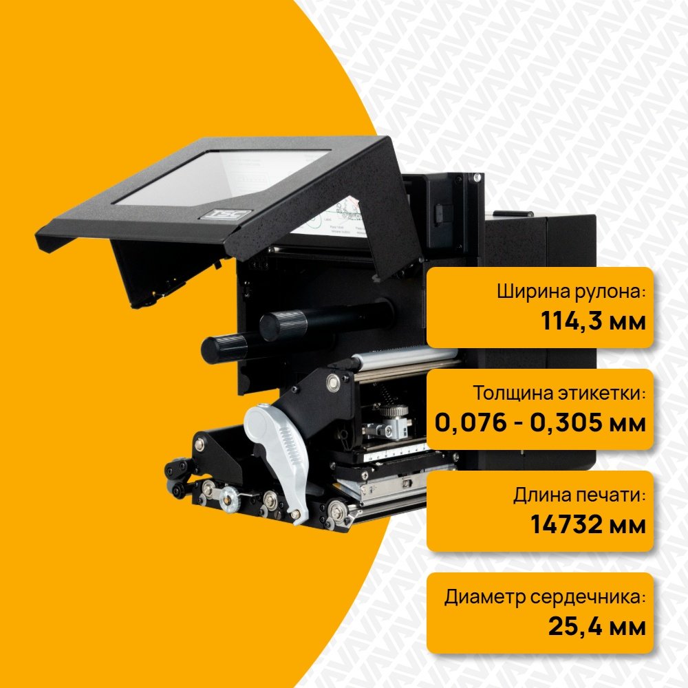 Модель оснащена датчиками зазора, черной метки, конца ленты (передающий), кодовый датчик ленты, открытия головки, открытия крышки носителя, открытия крышки держателя этикеток, универсальным интерфейсом ввода-вывода (GPIO), удобным цветным дисплеем, а так же обладает встроенной сетевой картой Ethernet, позволяя создавать бесперебойную работу, что обеспечивает совместимость с большинством распространенных устройств для нанесения этикеток.