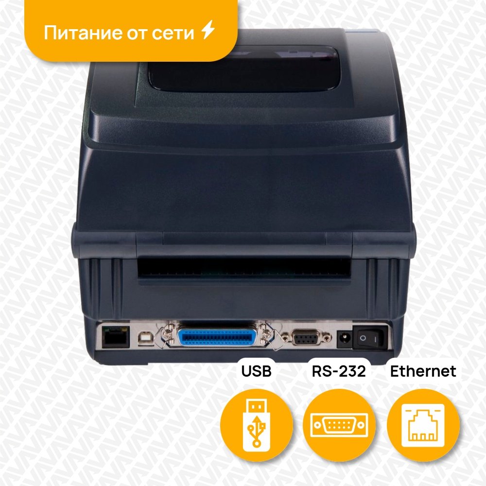 - Интерфейс подключения Centronics, USB 2.0, Ethernet, RS-232