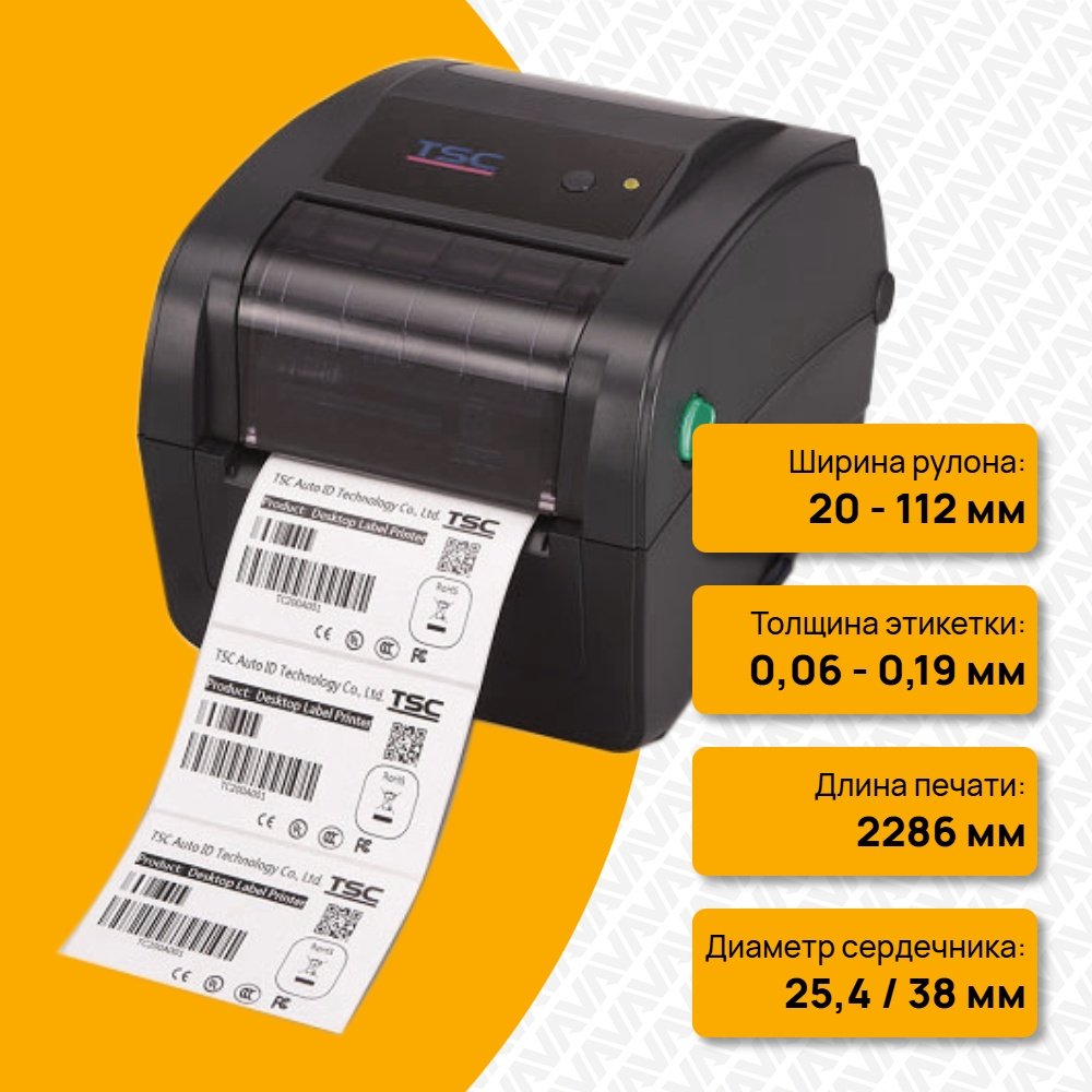 Термотрансферный принтер TSC TC200 [99-059A003-6002] с высокоскоростным интерфейсом предназначен для печати штрих-кодов, маркировки и идентификации продукции в самых разных отраслях.