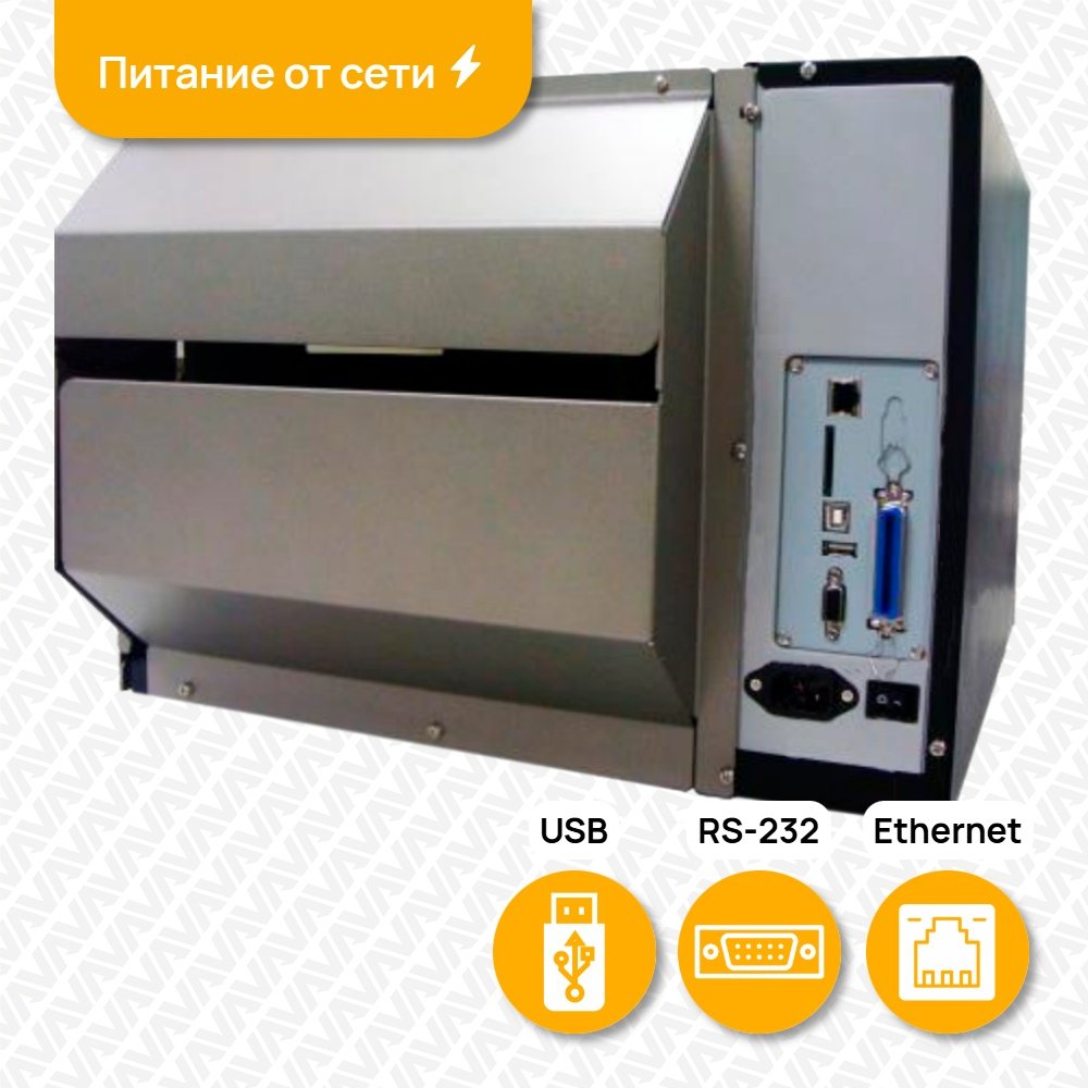 - Интерфейс подключения USB 2.0, RS-232,Centronics, Ethernet, USB host, GPIO