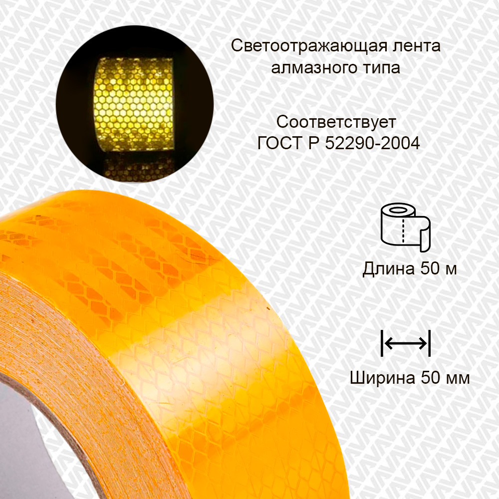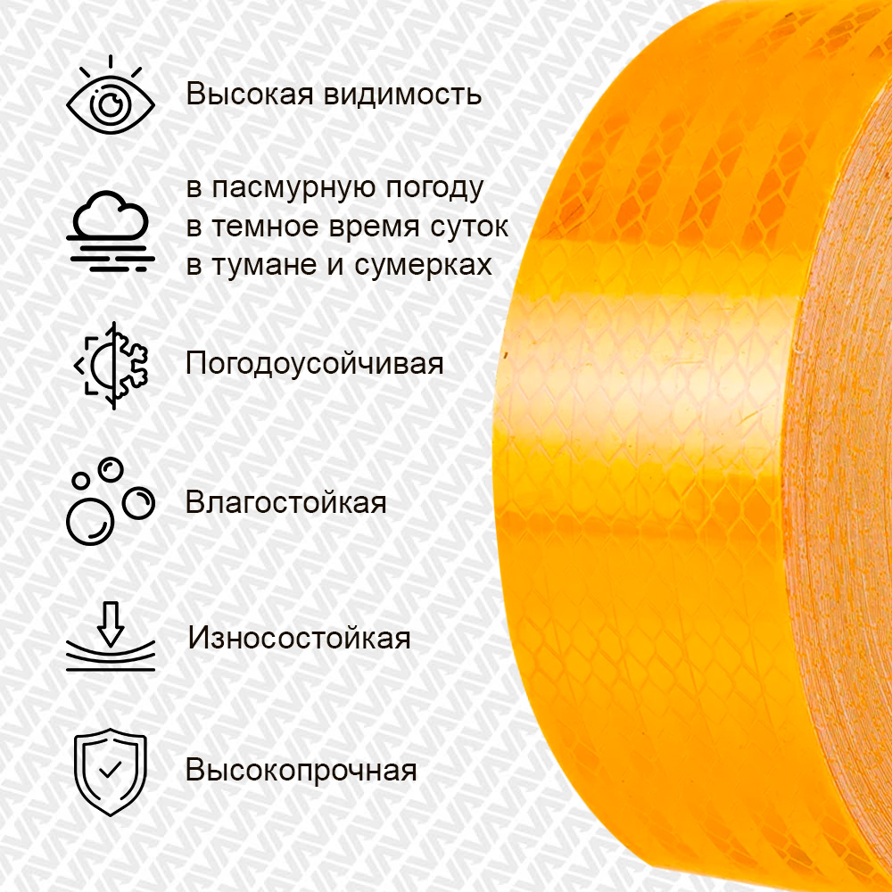Алмазная светоотражающая желтая лента применяется для контурной маркировки грузовых автомобилей, прицепов, фургонов, трейлеров, автобусов, велосипедов, самокатов, колясок.