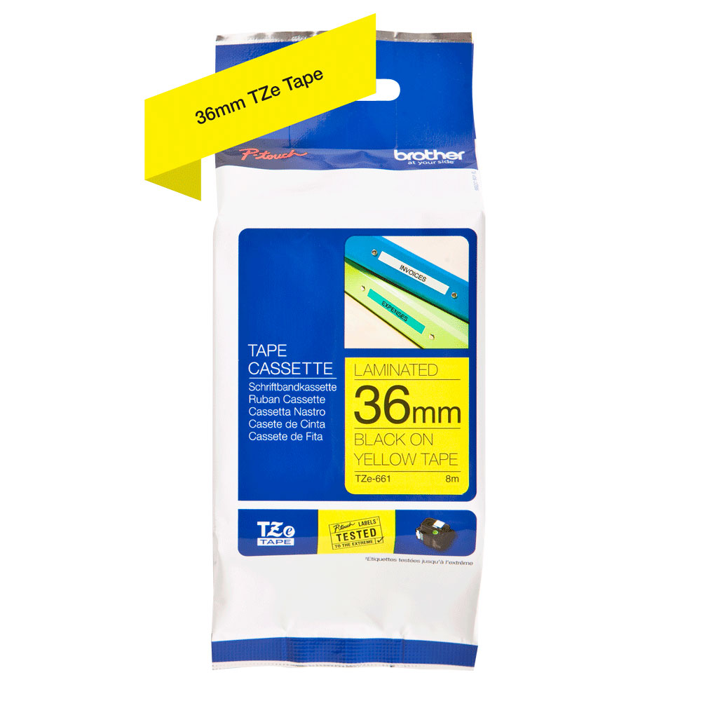 Картридж с лентой Brother TZe-661: черный текст на желтом фоне, ширина ленты 36 мм, длина 8 м.