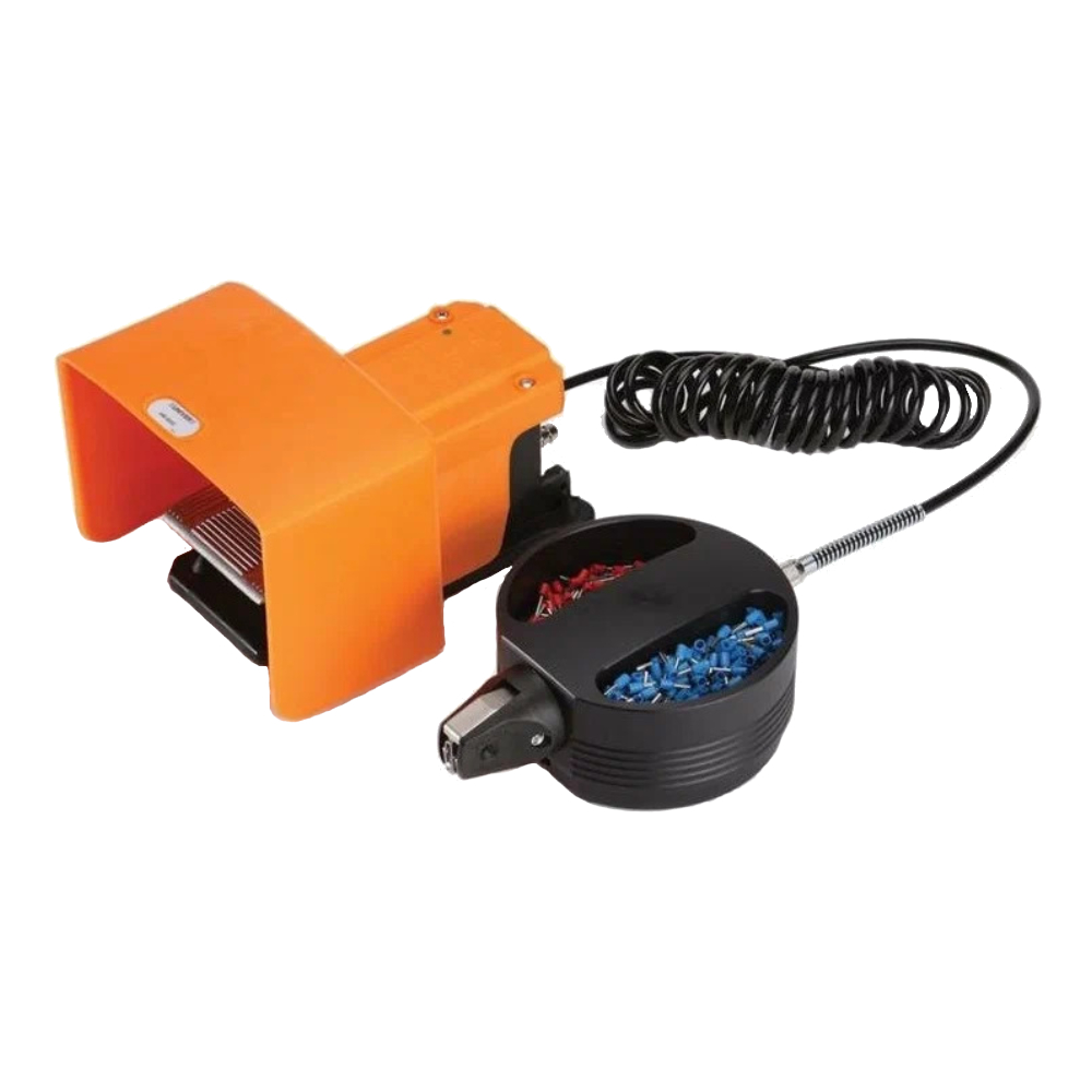 Настольный пневматический кримпер GLW AC-25T [61689] предназначен для обжима одинарных и двойных втулочных наконечников на многопроволочные жилы провода.