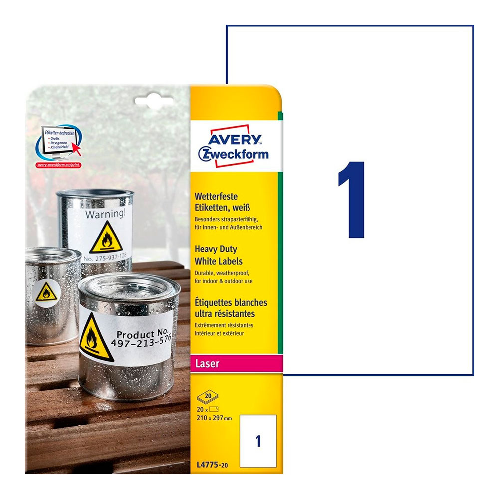 Всепогодные этикетки Avery Zweckform L4775-20 предназначены для создания долговечной маркировки в сложных погодных условиях.